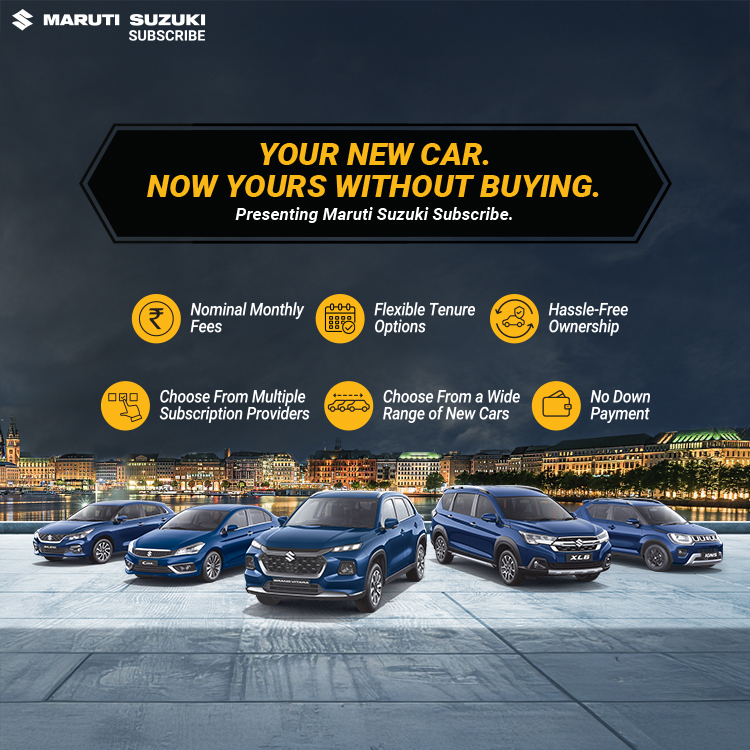 Located in Shimoga, Shruti Motors offers a plethora of options of Nexa cars for Maruti Suzuki Subscribe. You can choose your desired Maruti Suzuki car and drive it home at nominal monthly fees for a variety of flexible tenure periods. Whether you prefer Hatchback, Sedan, SUV or even MUV you are sure to find it at Shruti Motors, with an easy Maruti Suzuki Subscribe plan.